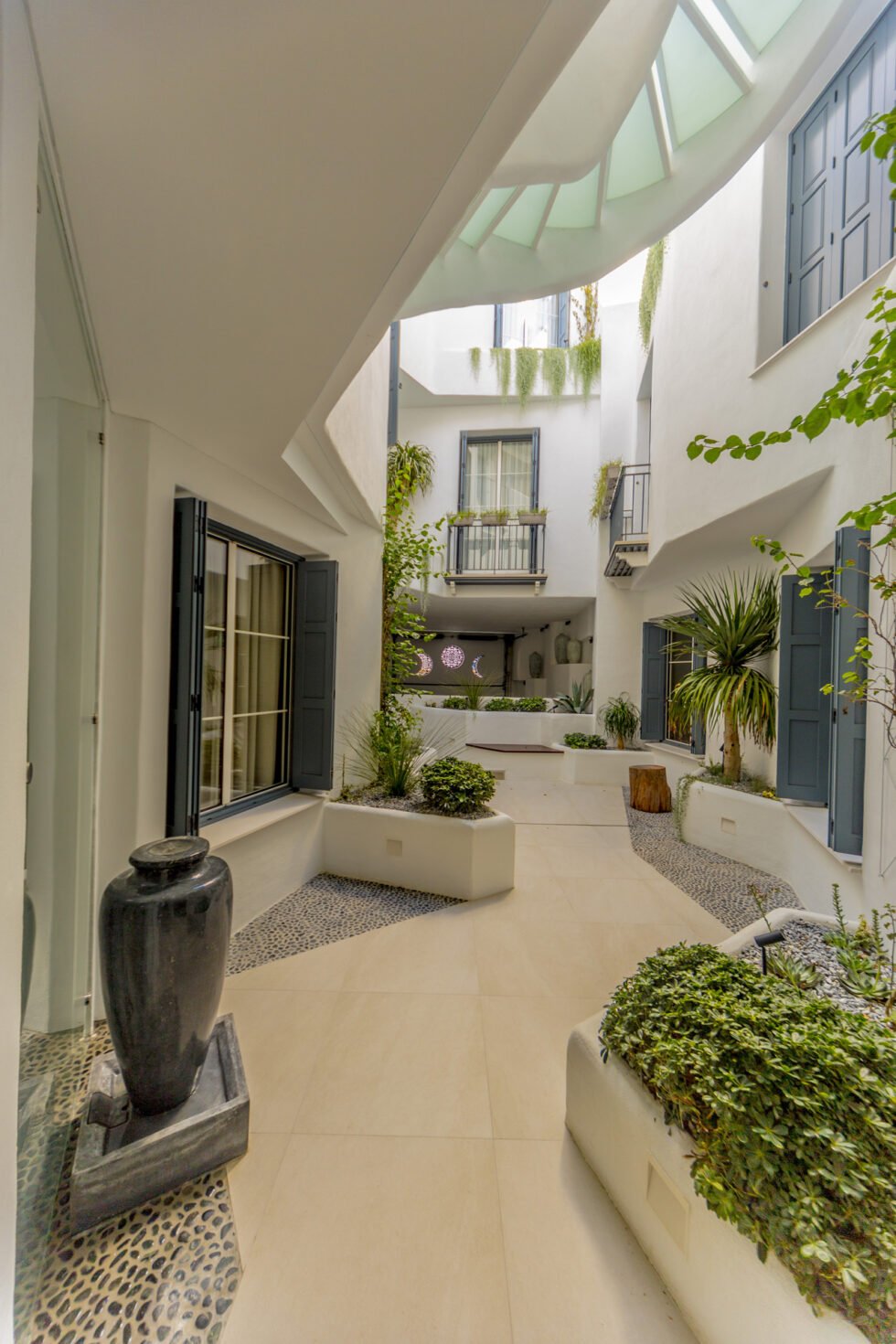 En pleno corazón del casco antiguo de Marbella se alza Casona Seis Lunas, un proyecto que fue sin duda todo un reto para nuestro equipo por su ubicación y emplazamiento. Apartamentos residenciales de lujo del arquitecto Teodoro Cabrilla que ha sabido llevar la elegancia, la serenidad y el lujo sin perder la esencia y el encanto del centro de nuestra ciudad. Paredes blancas, balaustras de madera, azul y jardines verticales hacen de Casona Seis Lunas un lugar de ensueño donde vivir o sencillamente pasar unas maravillosas vacaciones.