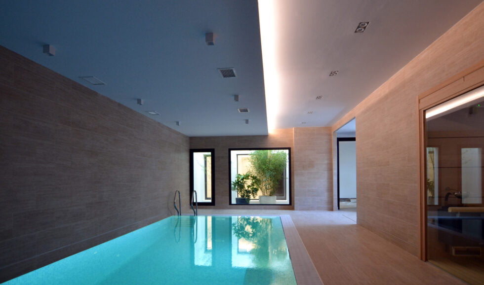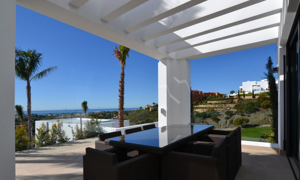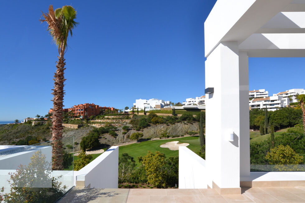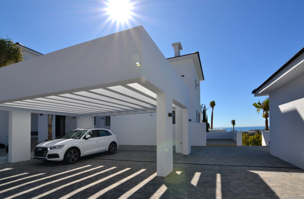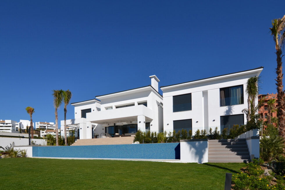 La compleja topografía está ajardinada y se utiliza para ocultar las zonas de servicio. Se trata de una villa contemporánea con espacios y acabados de lujo.