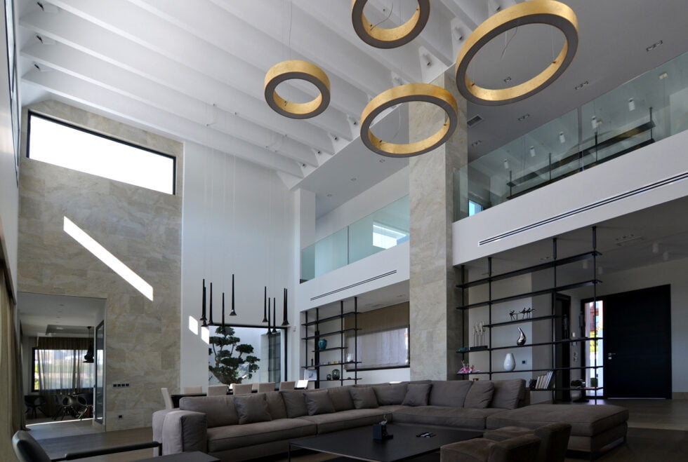 Esta gran villa con un ambicioso programa está organizada funcionalmente en tres niveles. La arquitectura se fragmenta en volúmenes verticales que dan sensación de escala y equilibrio.