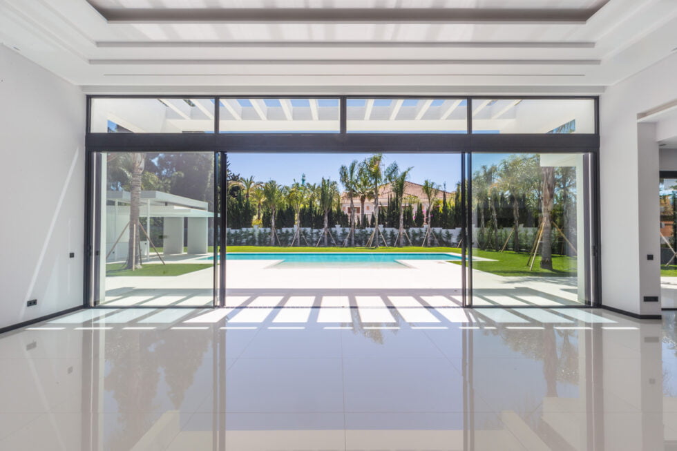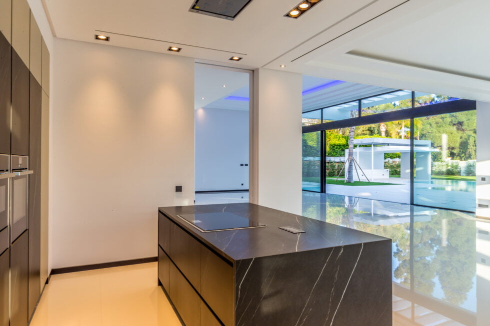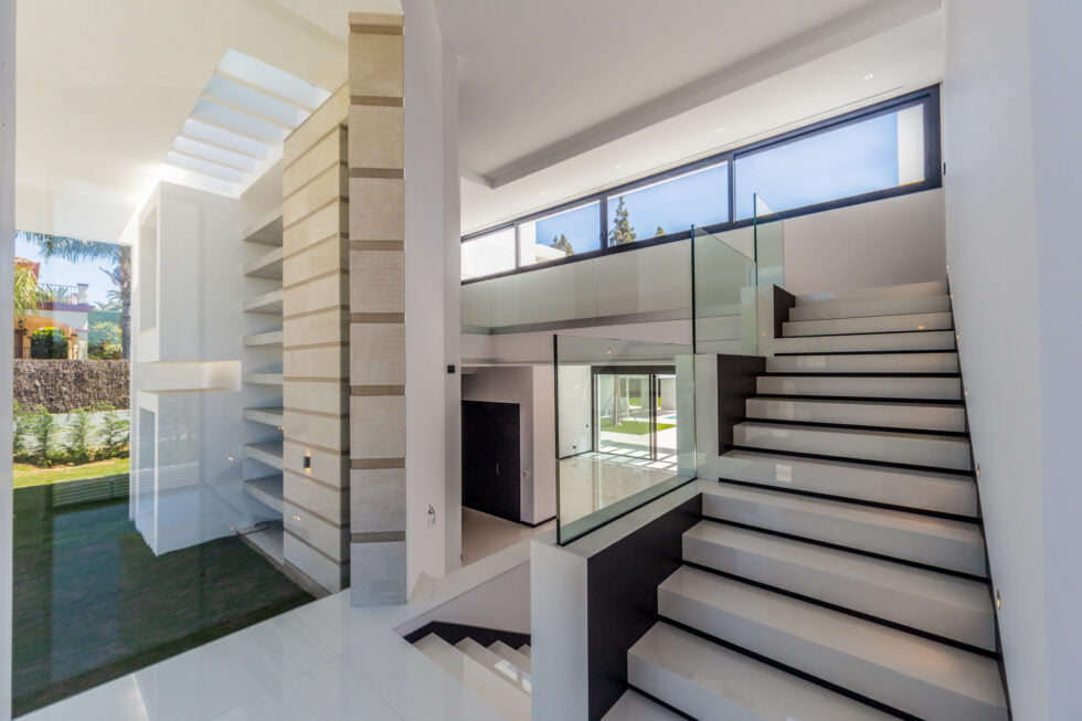 La arquitectura de la villa se integra perfectamente con su entorno, ofreciendo espacios amplios y luminosos. Los materiales de alta calidad y las líneas modernas hacen de esta vivienda una construcción excepcional para disfrutar de la vida en la Costa del Sol. Su diseño se concibe a través de un amplio hall de entrada donde encontramos la zona de reparto de estancias y áreas abiertas al gran salón-comedor de esta magnífica obra constructiva.