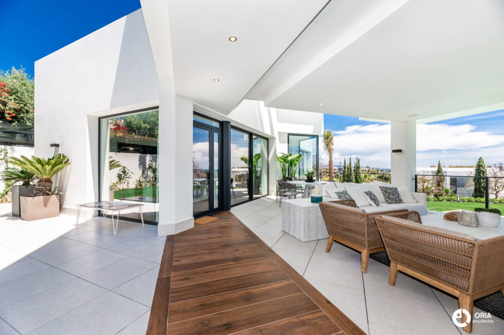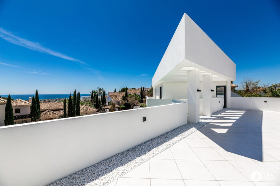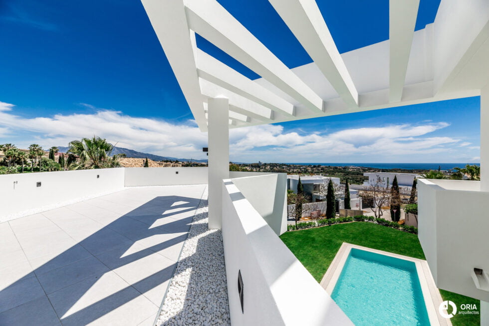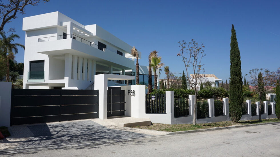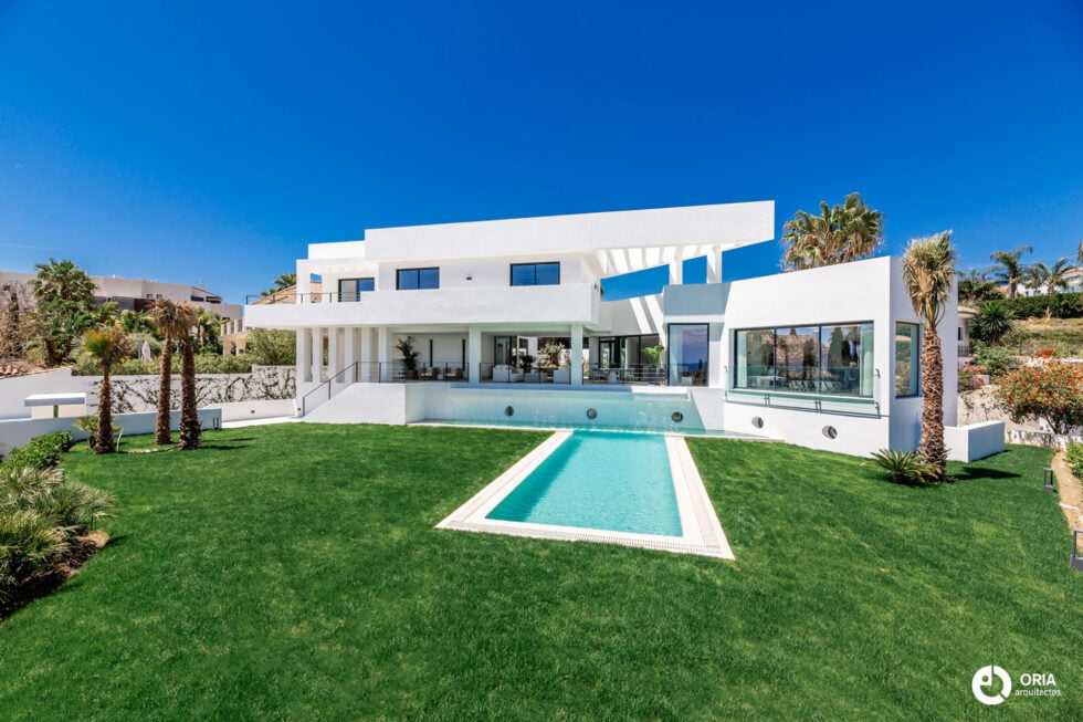 Construcción del vivienda unifamiliar ubicada en la Urbanización Los Flamingos de Benahavis, junto al el Hotel Villapadierna. La parcela en pendiente influya directamente en el diseño y construcción del proyecto.